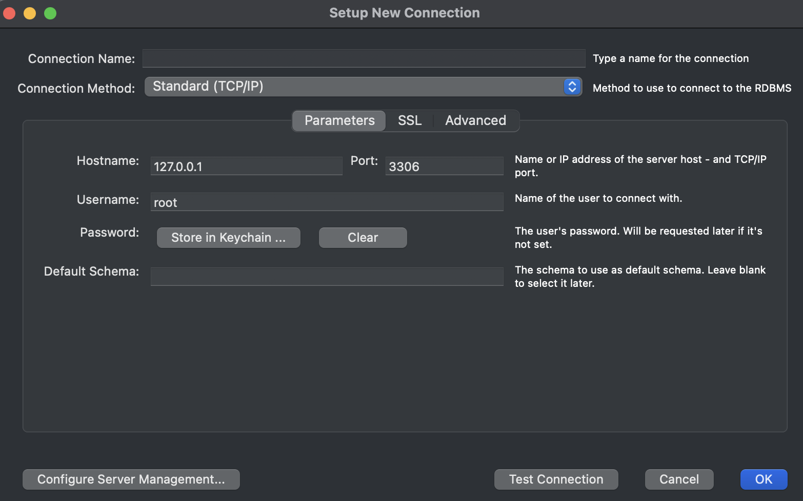 connection name은 아무거나 설정해도 되고 hostname에는 endpoint 내용을 넣어주고 username은 위에 있는 User name 그리고 Password도 넣어주고 스키마는 비운채로 ok누르시면 됩니다!
