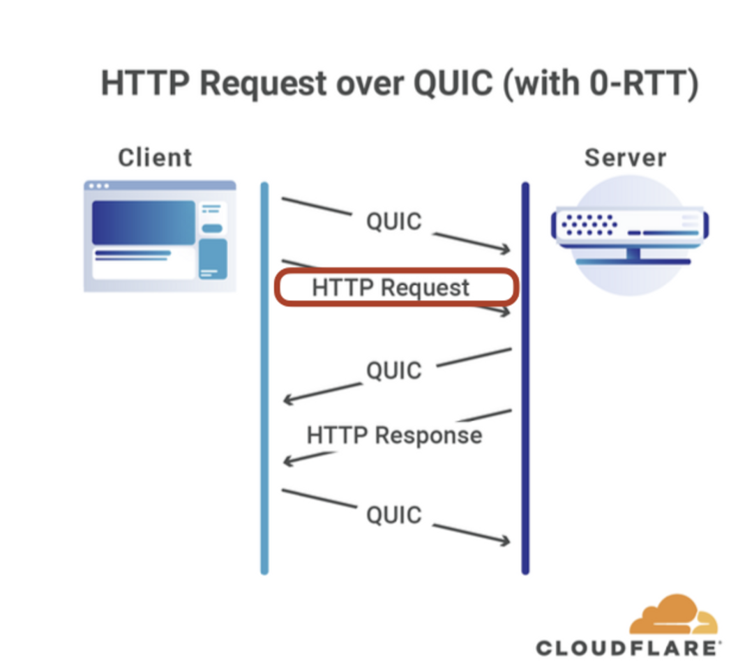 QUIC은 연결 설정 시에도 상대방과 관련된 보안과 관련된 정보를 한번 연결해놨던걸 cache에 저장하고 다시 재연결을 했을때 안바뀌었으면 과거에 가지고 있는 연결로 재활용해서 연결설정하자마자 그냥 데이터도 같이 쏴버린다 → 이런 경우 0RTT가 나옴.