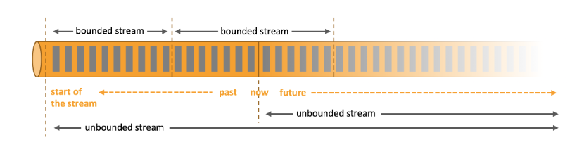 Apache Flink는 Bounded나 Unbounded stream data를 처리하기 위한 상태 기반의 오픈 소스 분산 엔진입니다. 여기서 stream은 물 흐르듯 데이터가 흘러가기 의미를 가지고 있고 실시간 데이터 처리에서는 계속해서 데이터가 들어오기 때문에 stream이라는 단어를 쓰고 있다고 합니다!