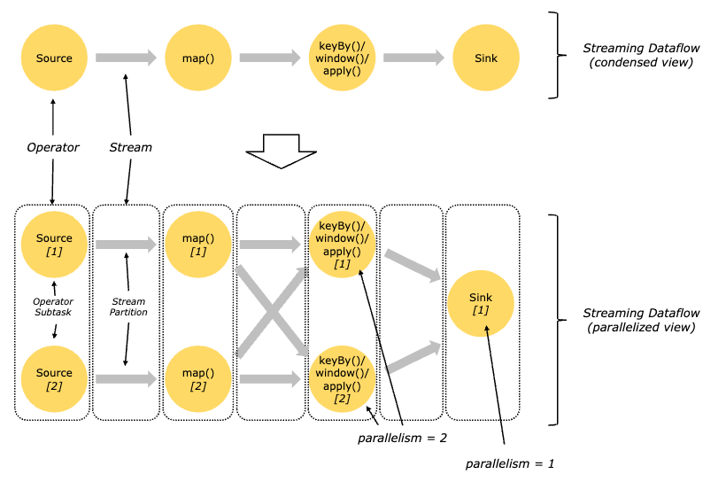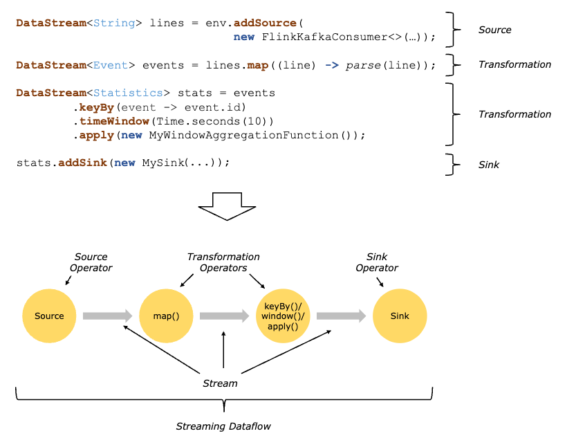 해당 그림처럼 하나의 Job은 Source부터 Sink까지의 과정으로 볼 수 있어요 (물론 Sink 키워드를 안쓰고 그냥 print 할 수도 있어욥) Source의 경우 input이라고 보면 되시구 Sink는 output이라고 생각하면 될 것 같아요~