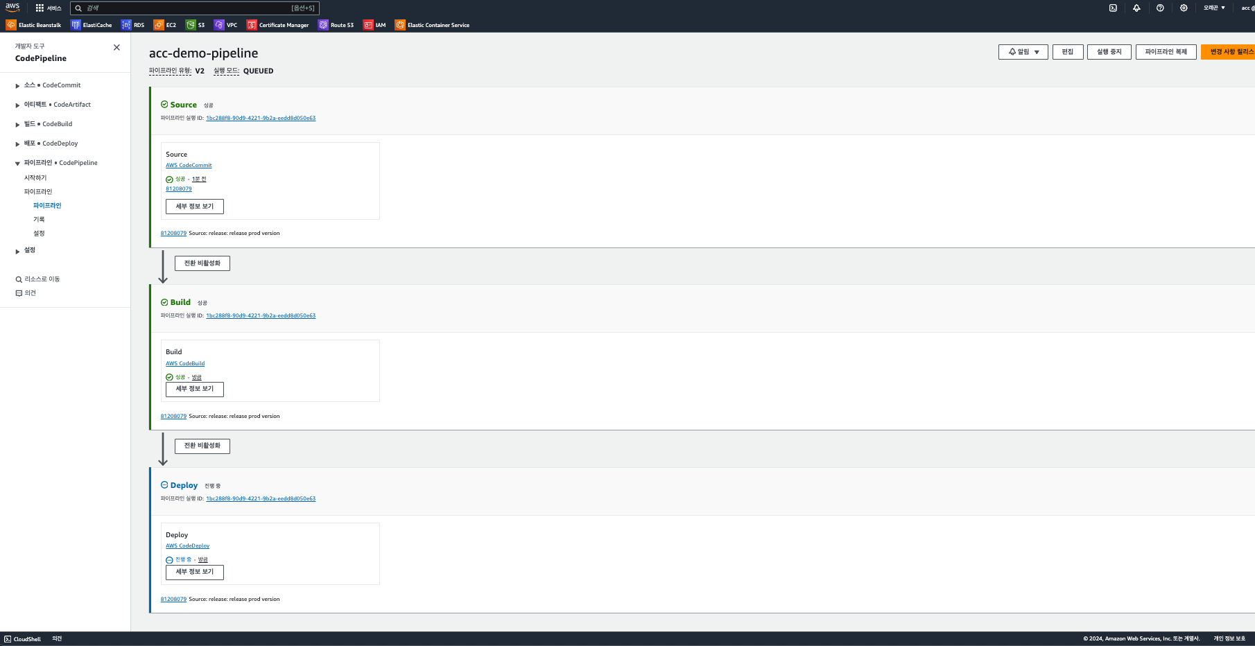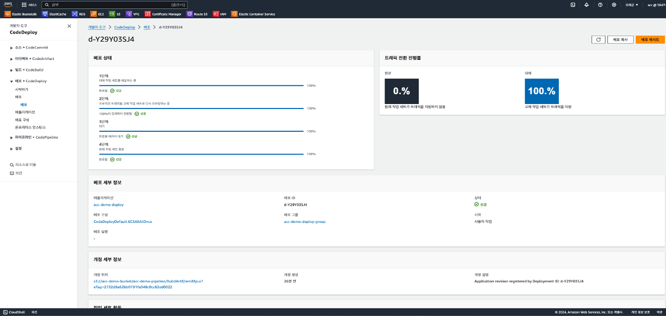 - 배포 작업이 끝나면 CodePipeline이 success 처리되고 종료