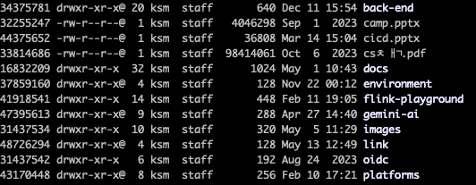 리눅스에서는 아래 명령어를 통해 나의 파일이나 디렉토리에 대한 inode 번호를 찾을 수 있으며 맨 앞에 위치한 숫자가 나의 바탕화면에 있는 파일과 디렉토리에 대한 inode 번호가 된다.