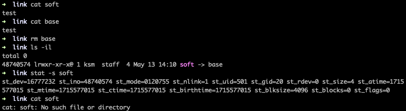 소프트 링크 파일의 포인터가 원본 파일의 inode를 가르킨다면 만약 원본 파일이 삭제되면 링크된 파일은 어떻게 되는지 알아보자.