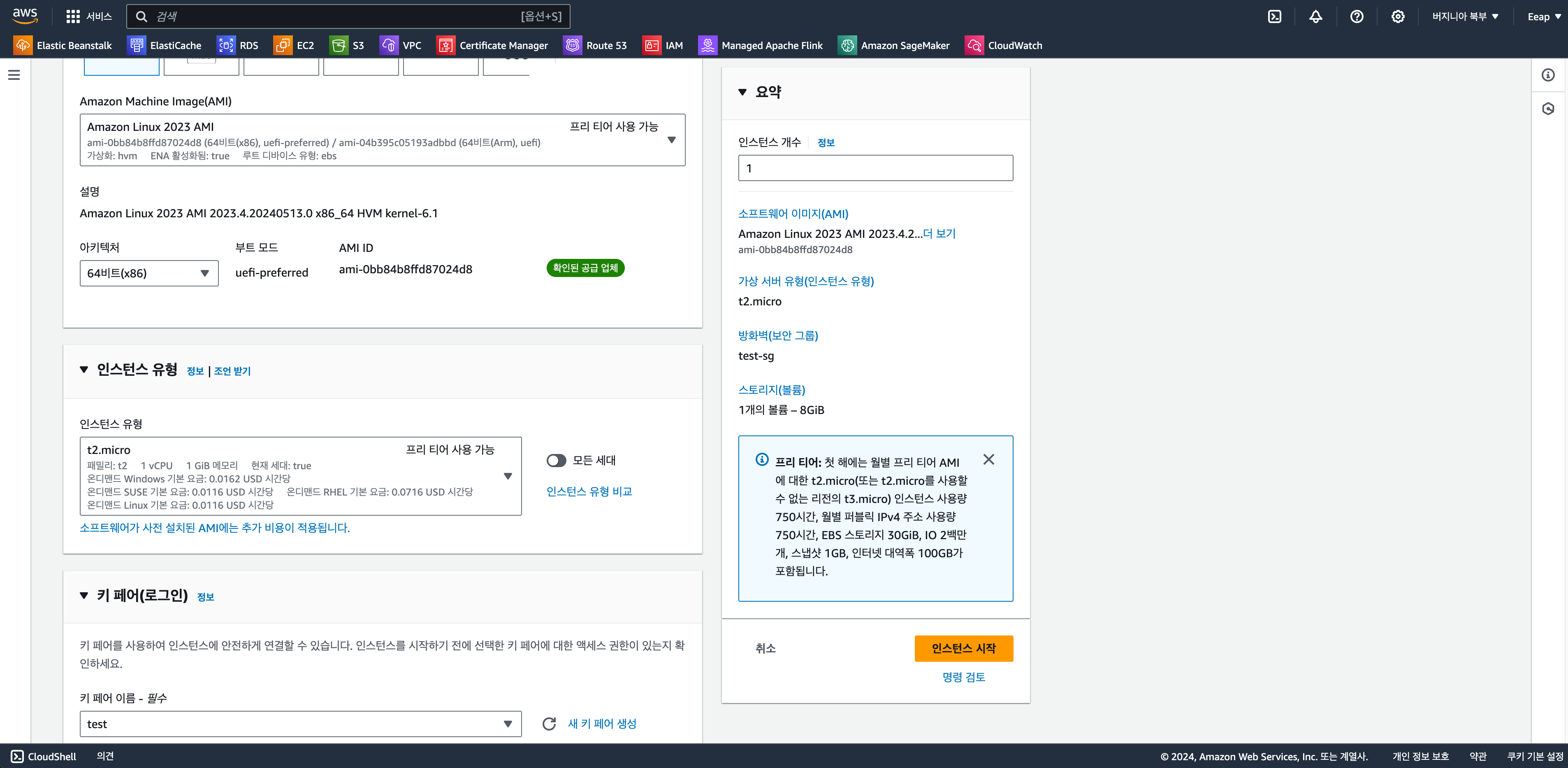 보안 그룹은 아래처럼 ssh를 이용해서 접근만 가능하도록 구성을 하였다. (추후 80번 포트에 대해 추가할 예정이다)